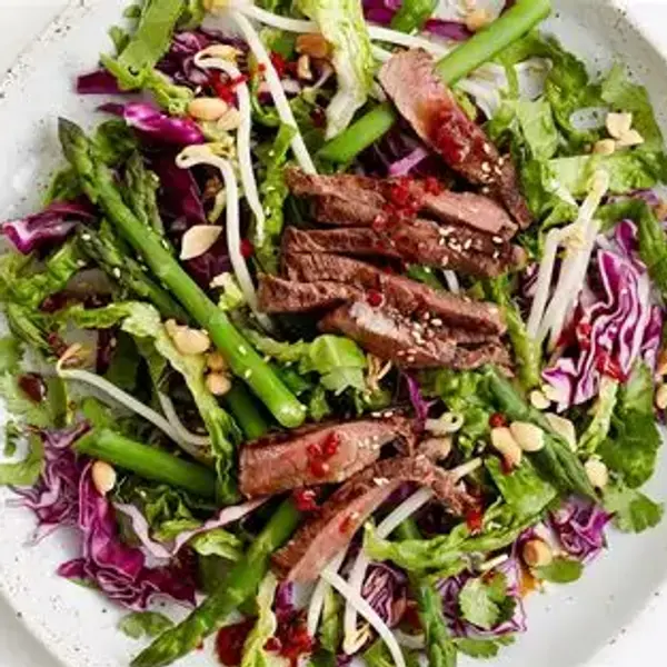 Шаргал гадаргуутай, гриллдэж шарсан үхрийн махыг шинэхэн ногоотой хослуулан, амтны тансаг аялгууг өгдөг салад.