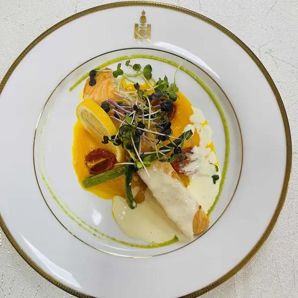 Гүн улаан өнгөтэй, нарийн ширхэгтэй яргай загасыг шарж, зөөлөн амт, далайн үнэрийг төгс хослуулсан тансаг зоог.