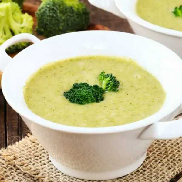 Шинэхэн брокколиг зөөлөн чанаж, кремлэг бүтэцтэй шөлөнд хольж, амтны тансаг, сэрүүн мэдрэмжтэй хоол.