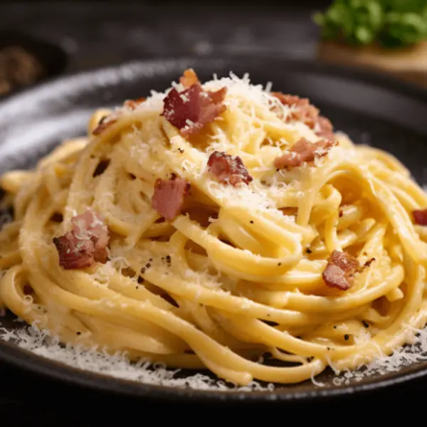 Кремлэг соус, пармезан бяслаг, хөнгөн шарсан тахианы мах, гүн амттай, тансаг паста.
