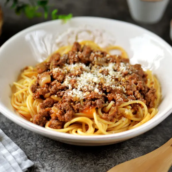 Үхрийн мах, амтлаг ногоо болон улаан лоольны соустай хослуулсан, гүн амттай, тансаг паста.