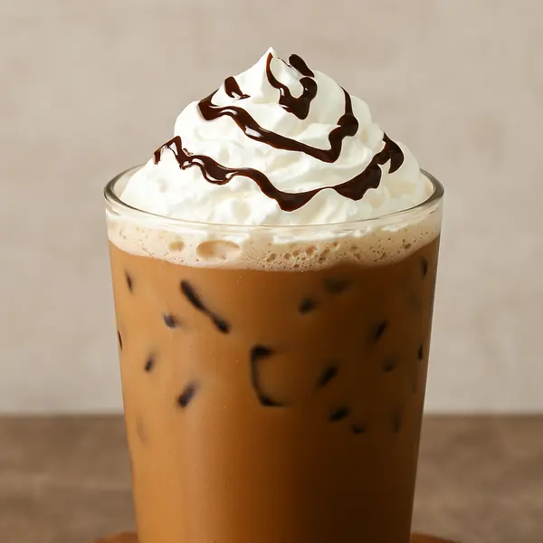 A delightful fusion of rich espresso and chocolate syrup, blended with chilled milk and ice for a smooth, chocolaty coffee experience. topped with cream and a drizzle of chocolate sauce for added indulgence.