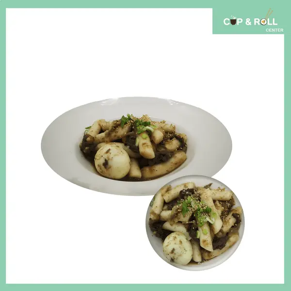 Традиционно ястие приготвено от оризов кейк, сос от черен боб джаджанг, соев сос и яйце. украсено със зелен лук и сусам. (450g.) алергени: глутен, яица, сусам, соя