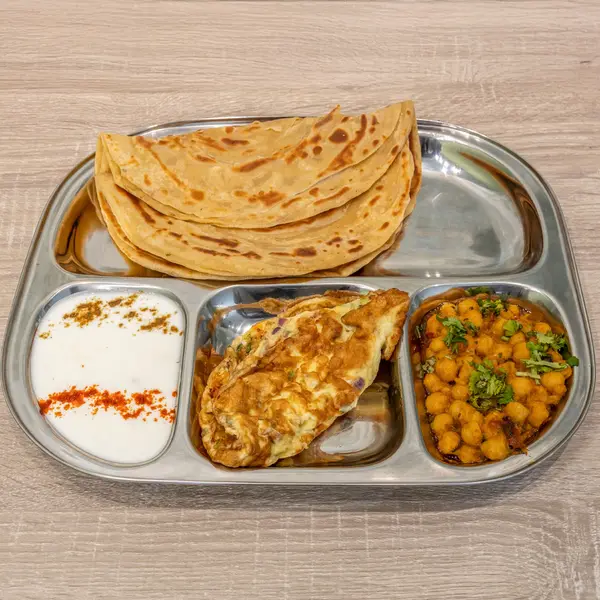 2 parathas (aloo, paneer, gobi, mix, keema)